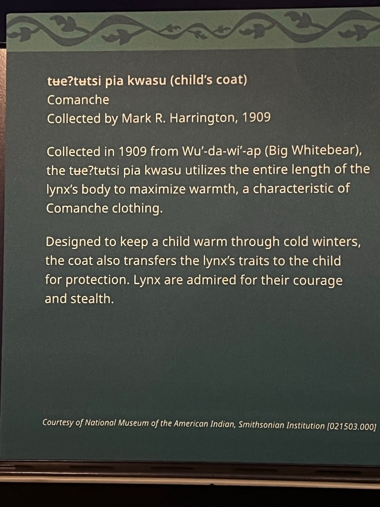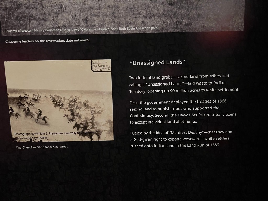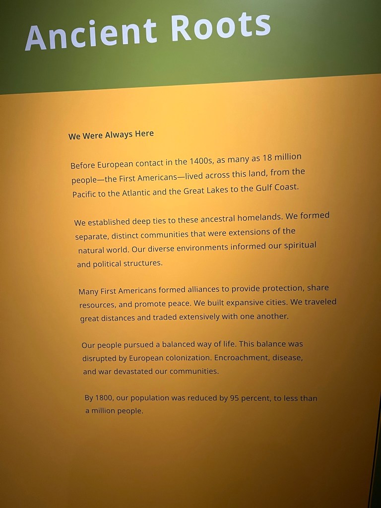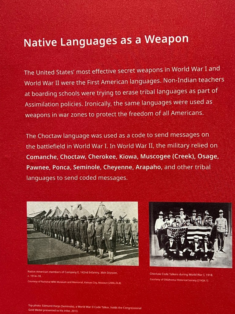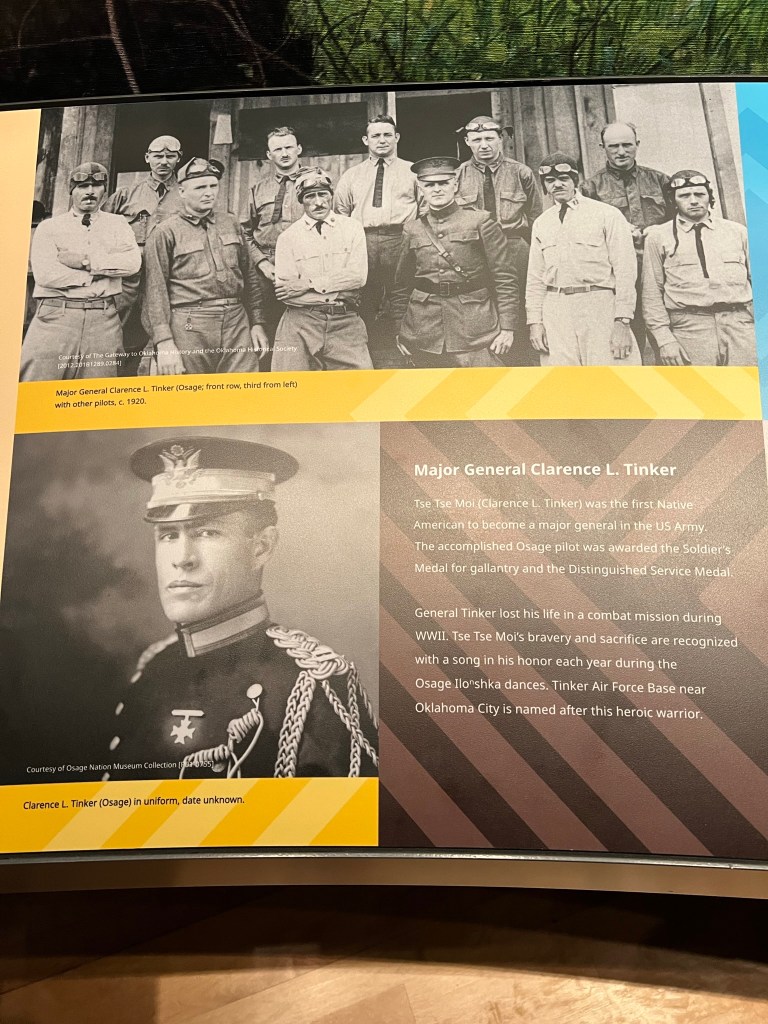 With our cycling goals accomplished, we spent today at two very interesting sites, the First Americans Museum (“FAM”) and the National Cowboy and Western Heritage Museum. FAM shares the history, unique cultures, diversity, contributions and resilience of the 39 distinctive First American Nations now in Oklahoma. Only a few tribal nations were indigenous to what is now the State of Oklahoma. All others were removed from homelands across the contiguous United States to Indian Territory. In 1907, Oklahoma became the 46th state in the union. The State of Oklahoma’s name comes from two Choctaw words, Okla (people) and Humma (red). Translated it means “Red People.” (See our slideshow to learn more.)
