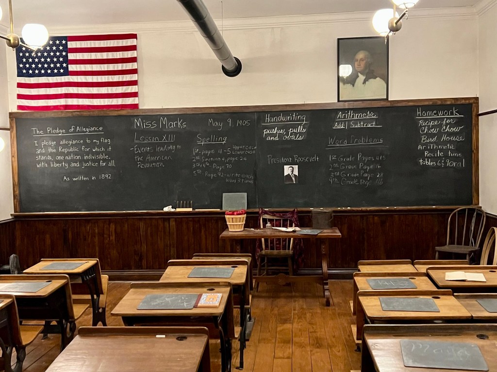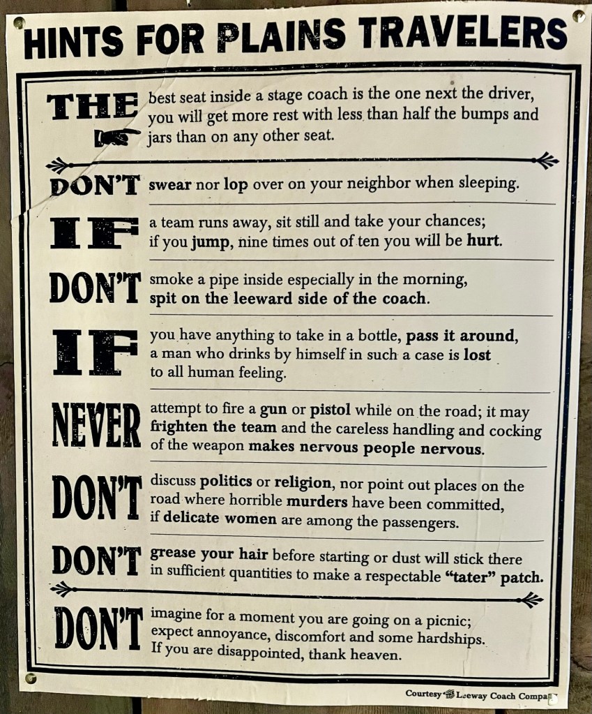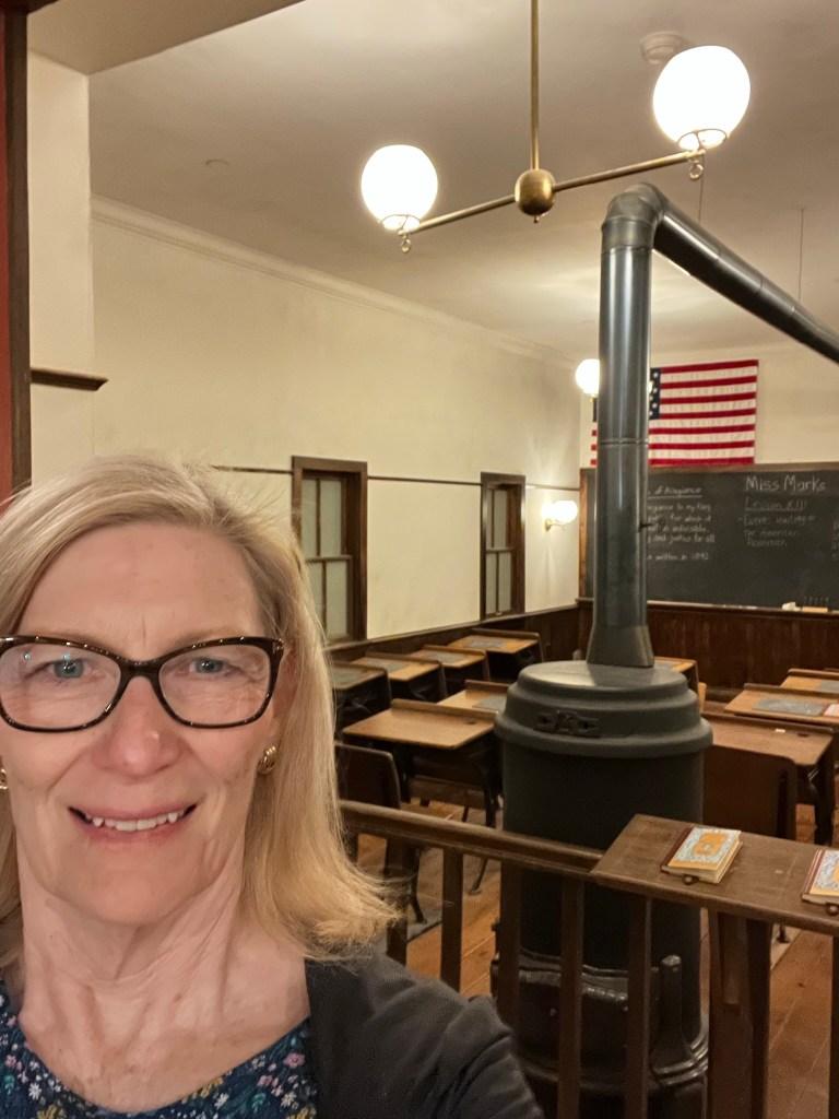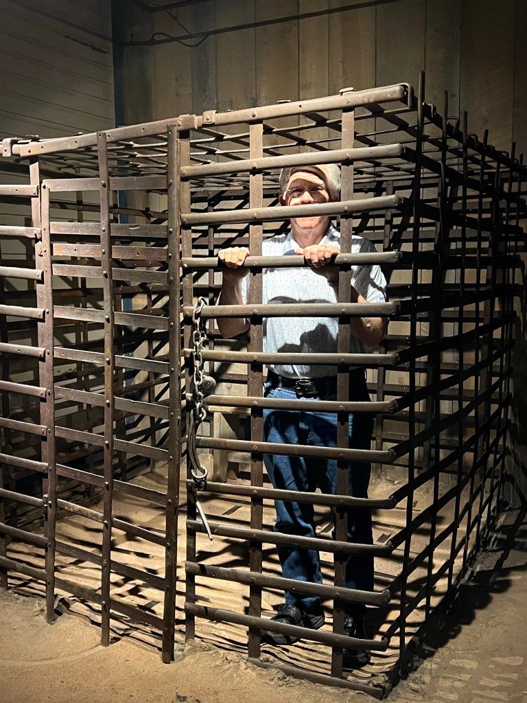 We strolled through an old western town where Sue visited the one-room school house, and Bill spent time in the saloon and jail. (See our slideshow from today’s visit.)