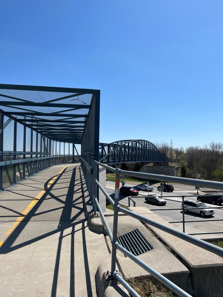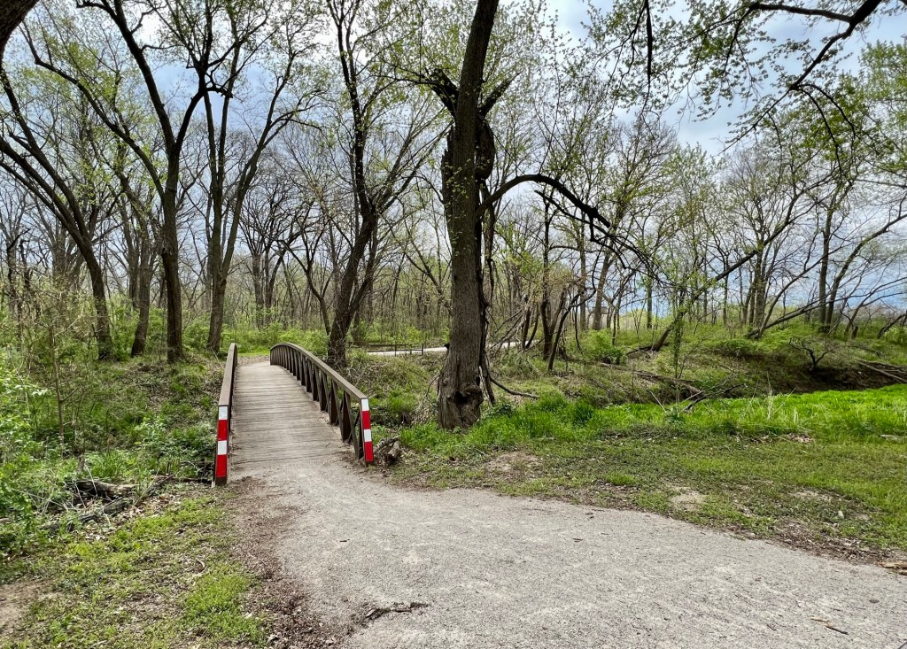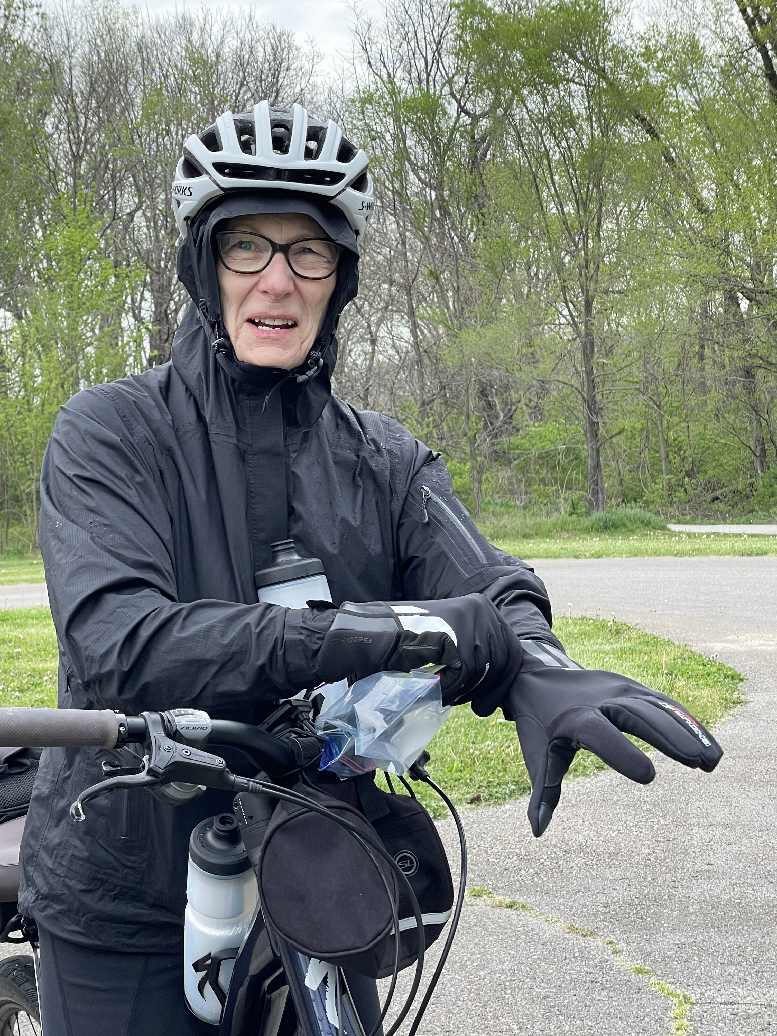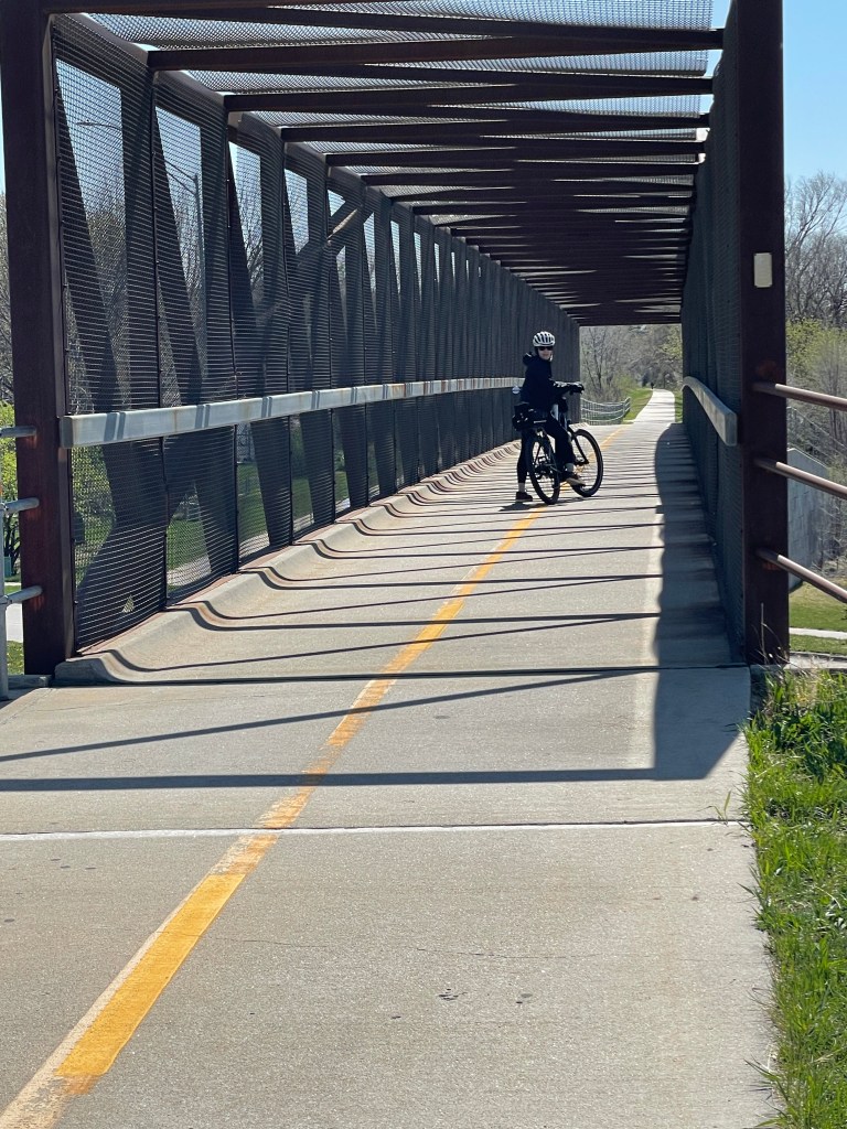 By lunchtime the temperature had risen to 51o. Winds were still strong and gusts were even stronger, but we bundled up in layers and headed for the trails. We completed 30 miles by combining several trails of the Great Plains Trail Network — the Old Cheney Trail, Rock Island Trail, Helen Boosalis Trail, Billy Wolff Trail and the Southpointe Trail. The wide concrete paths took us across bridges, by the children’s zoo & Botanical Gardens, the UNL City Campus, Antelope Park and Hibner Stadium (the soccer complex of the University of Nebraska).