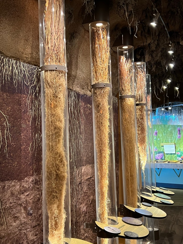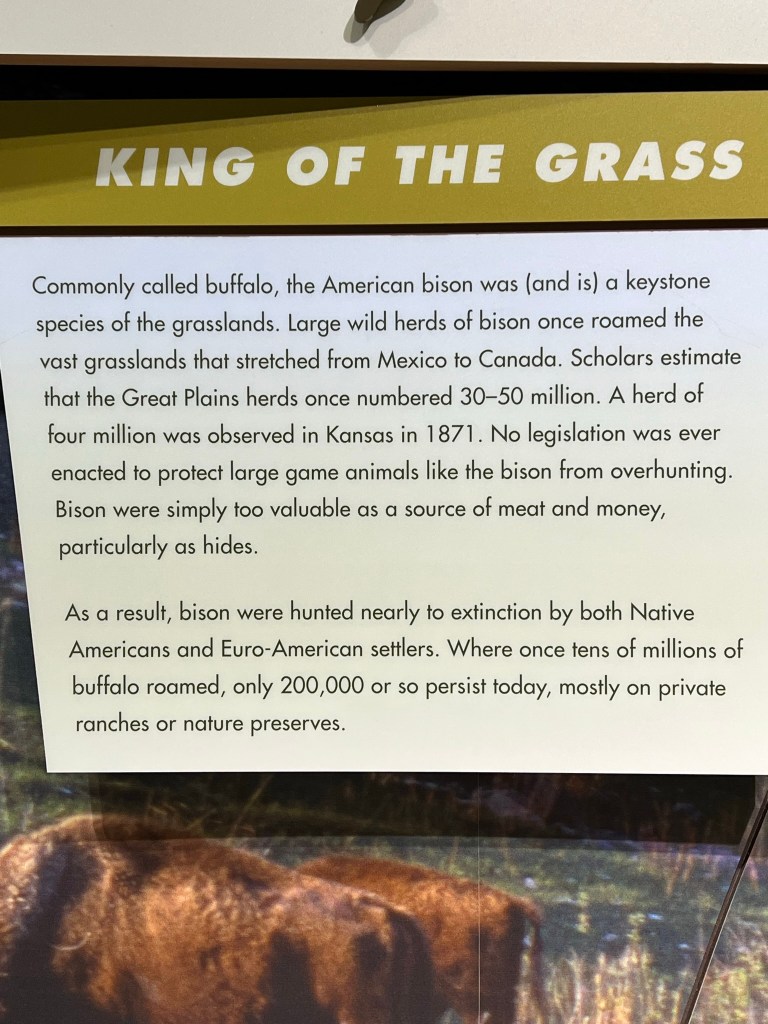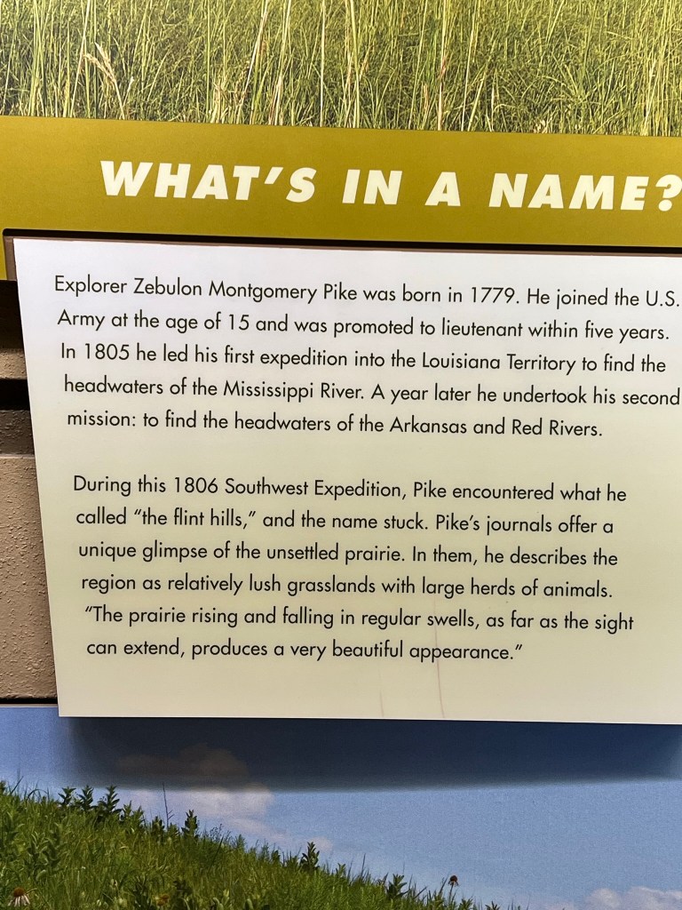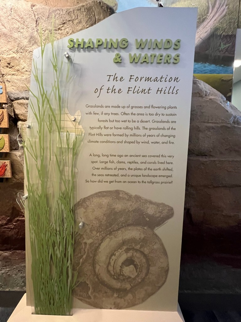 Mother Nature changed our plans for this morning! We had planned on driving to Marysville to ride the Blue River Rail Trail to the Nebraska state line, but it was raining and the Kansas winds continued to be strong. The weather radar indicated the rain would be out of the area by mid-day, so, we decided to visit the Flint Hills Discovery Center in the morning and do our ride in the afternoon.