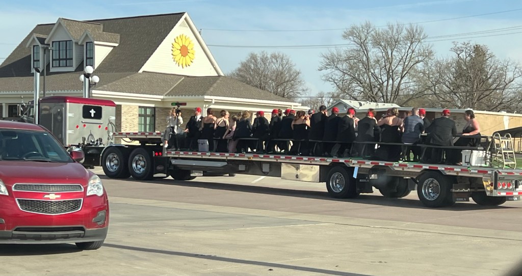 Other “Norman Rockwell” images of “Small Town America” we saw included kids playing catch in their frontyard, a red & white striped barber pole outside the barber shop, train cars parked on the tracks running through town, mothers pushing their babies on the park swings, and people working in their yards. It must have been prom night because we watched couples, dressed to the nines, gather in the park for photographs. It appeared the whole community was there snapping pictures. Later, as we were leaving town, we saw the prom-goers riding to a restaurant on the flatbed of an 18 wheeler. We decided that must be the small town equivalent of taking a limo to the prom.