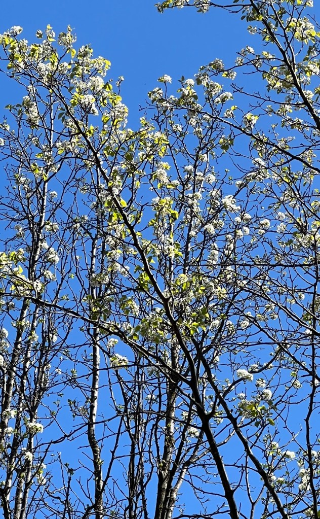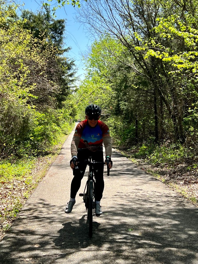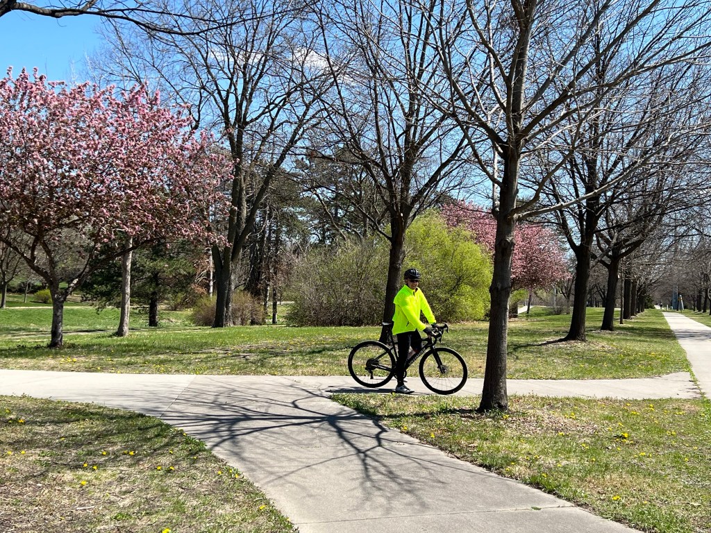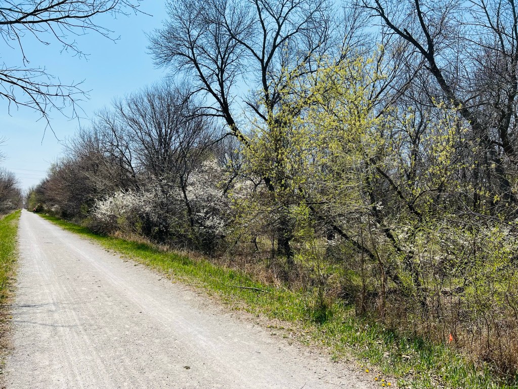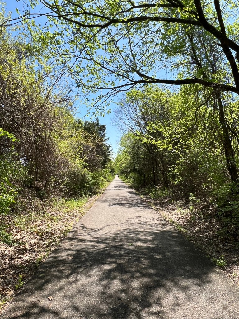 The trails passing through wooded areas and neighborhoods were really pretty. Signs of spring were everywhere — with budding green leaves, blossoms of pink and white, daffodils and tulips, cardinals and robins flying through the trees.