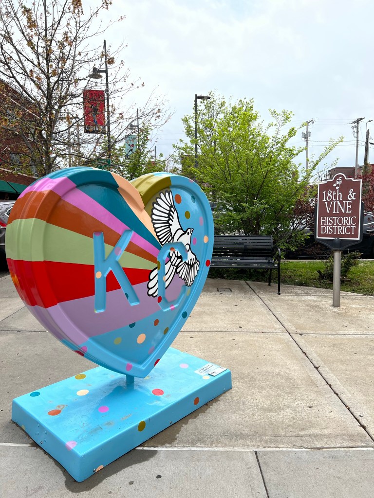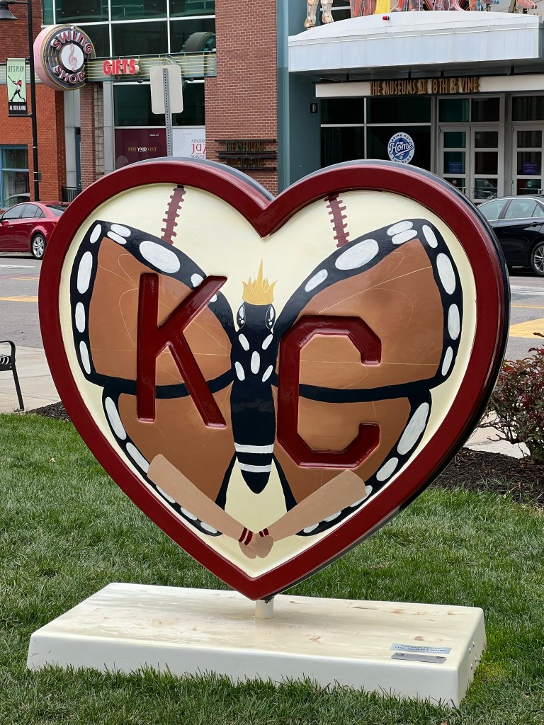 While in Kansas City, we kept seeing statues of hearts (very similar to the statues of black squirrels we saw in Marysville, KS). It turns out that Kansas City, located right in center of “Americas Heartland,” has laid claim to the phrase “Americas Heartland” and Kansas City has created the Parade of Hearts to comemmorate that claim. Like the statues of the black squirrels in Marysville, KS, the hearts in Kansas City show different things important in the life of the citizens of Kansas City.