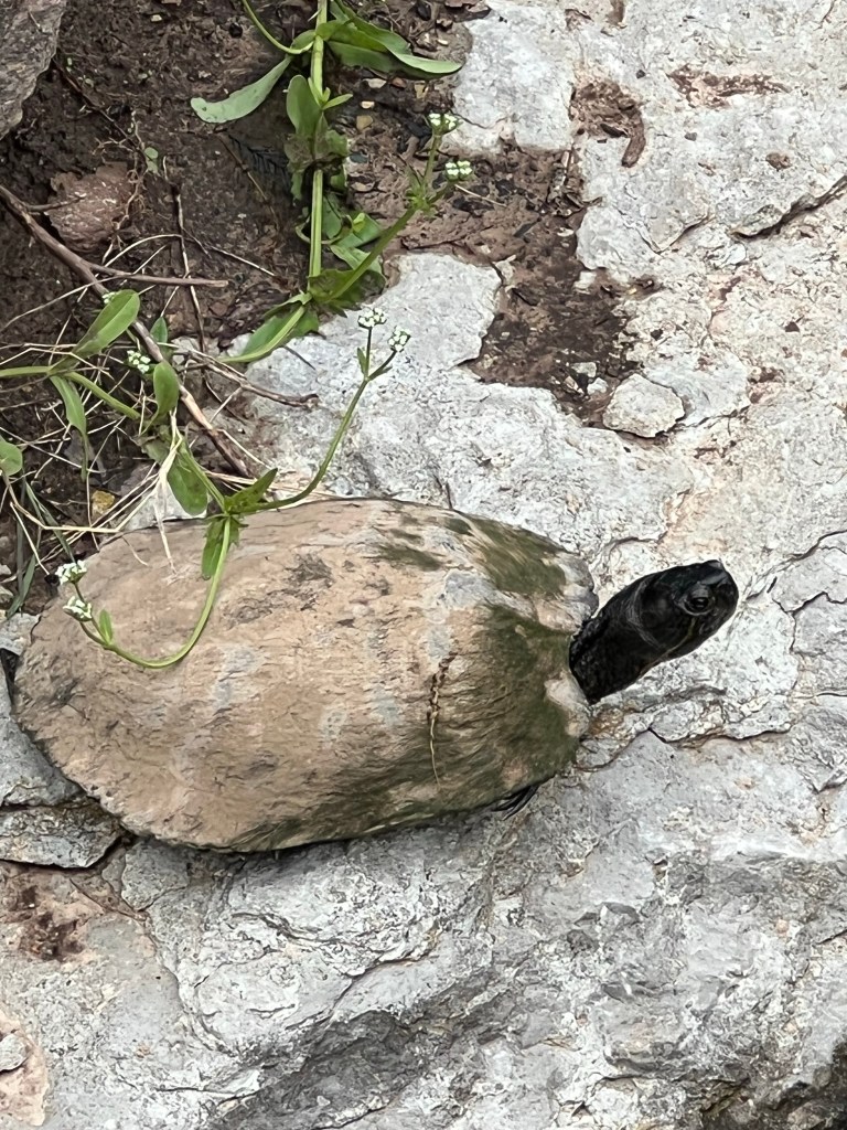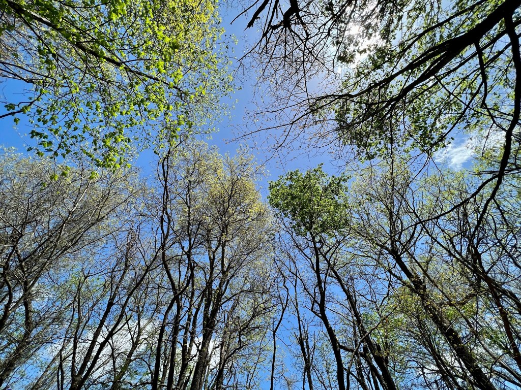 We had a few short, light showers before the sky cleared and the sun came out. It turned out to be a beautiful day! The trail was lined with wildflowers and the trees showed their yellow-green leaves of spring.
