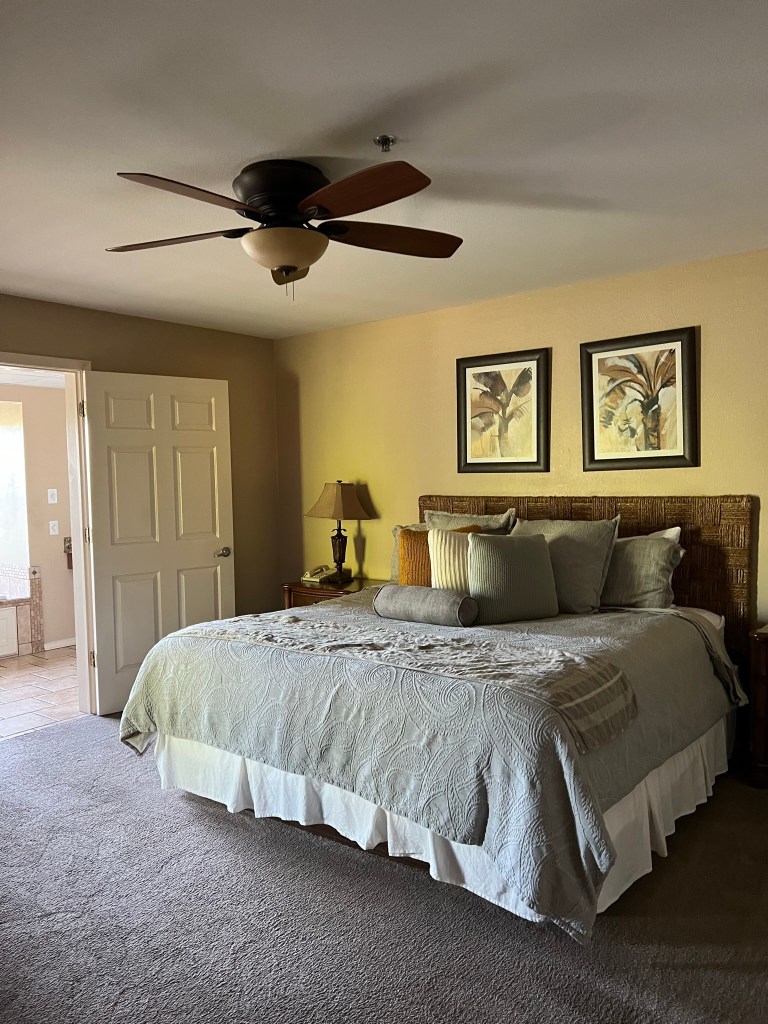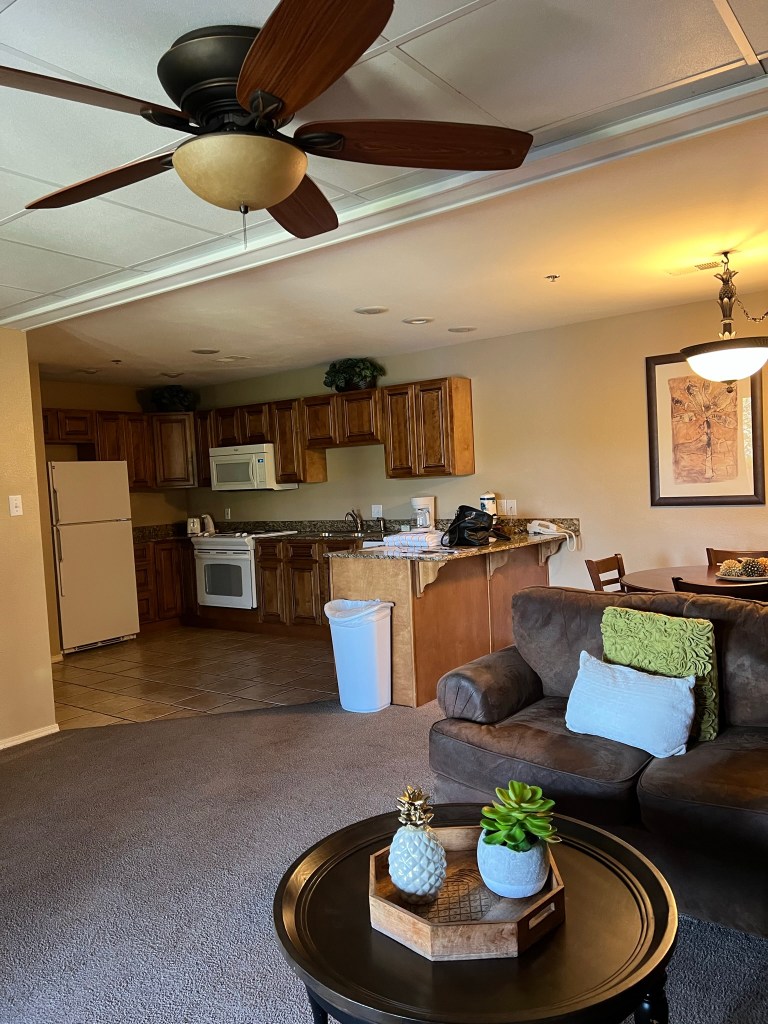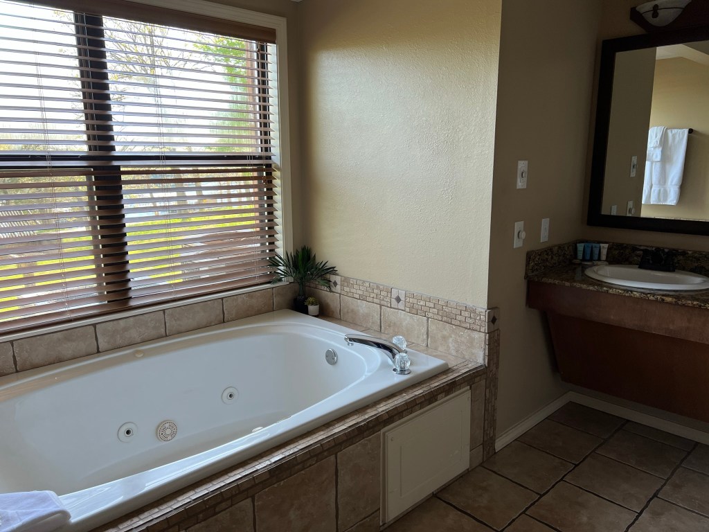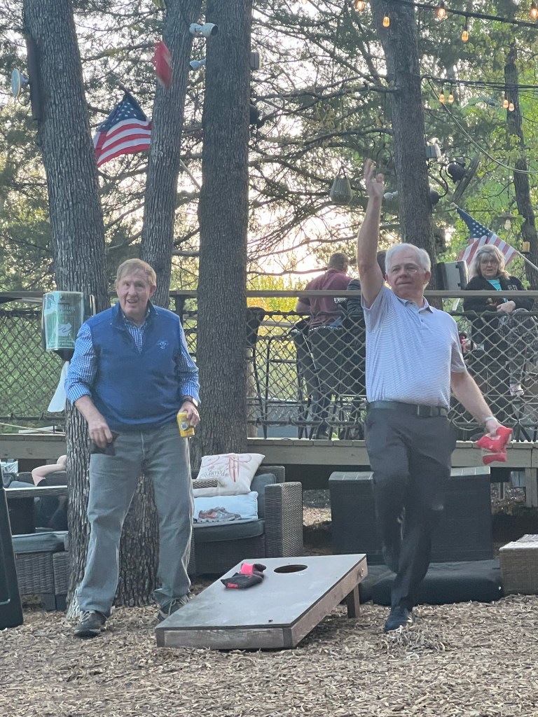 Luckily, we had time to get settled and clean up from our ride before Joyce and Gordy arrived. We were excited to learn we have a condo with a beautiful view of the lake. Bill and Gordy played cornhole, and we enjoyed a pizza dinner from an on-site restaurant.