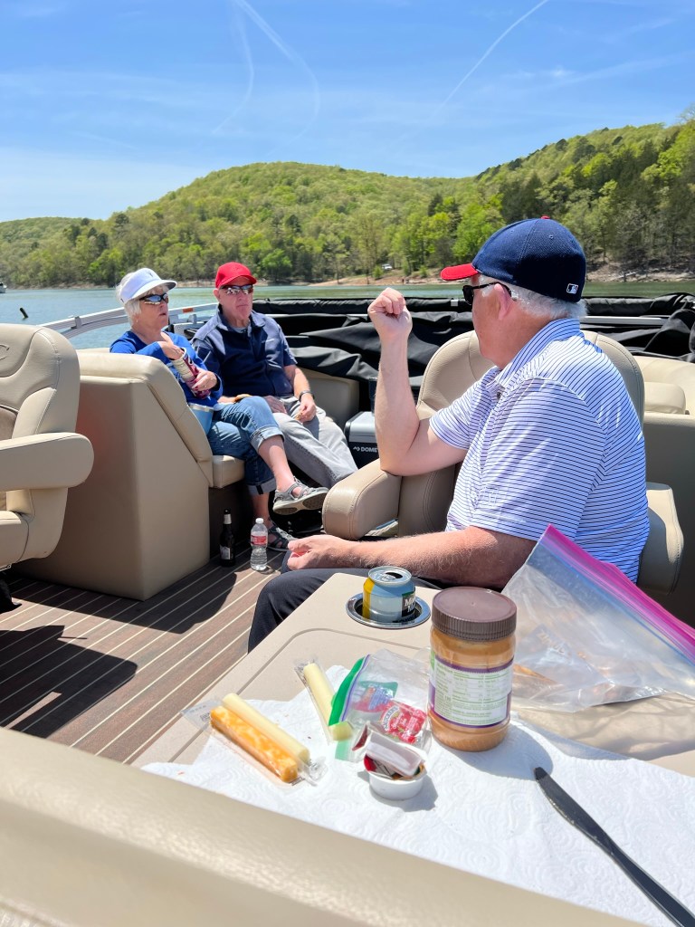 Our day on the water was wonderful! “Captain Gordy” guided the pontoon boat over quite a bit of Table Rock Lake. A picnic in a quiet cove, blue skies, warm sunshine, cool water, lush foliage, and good friends made for a GREAT day!