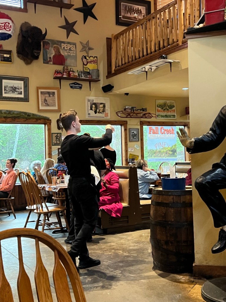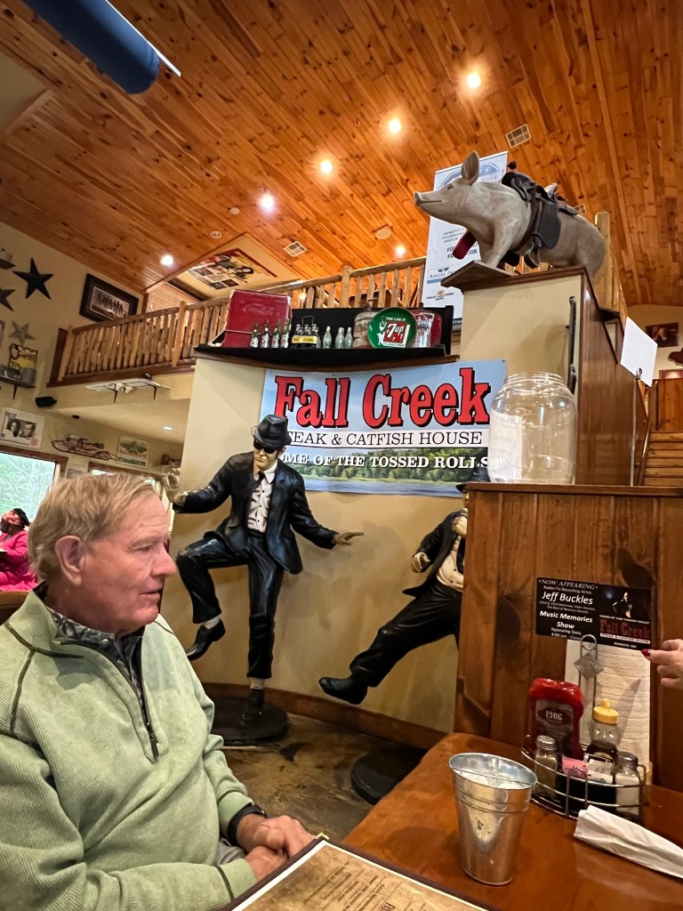 We had dinner at Fall Creek Steak & Catfish House. This restaurant was unique because the waiters served hot rolls by tossing them to people at their tables.