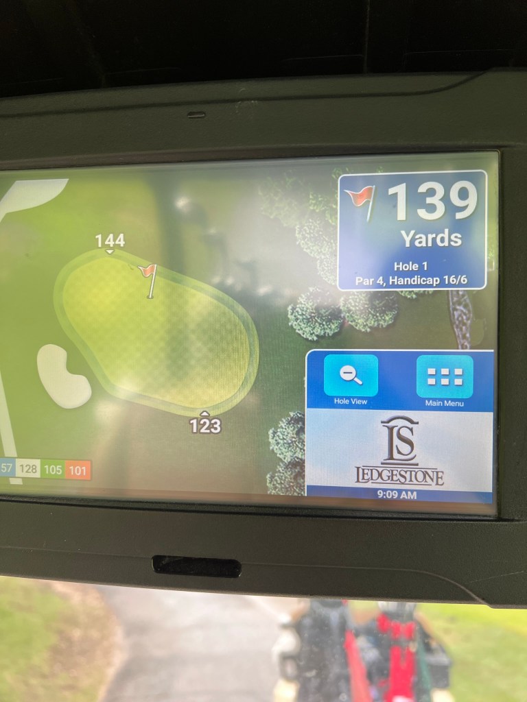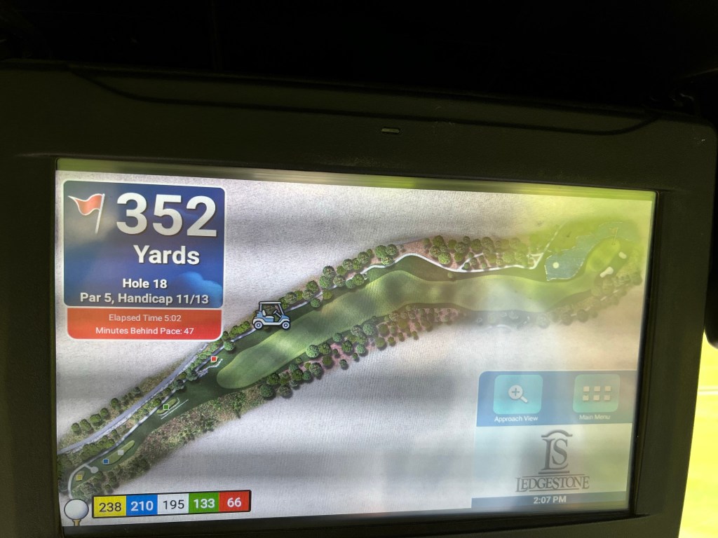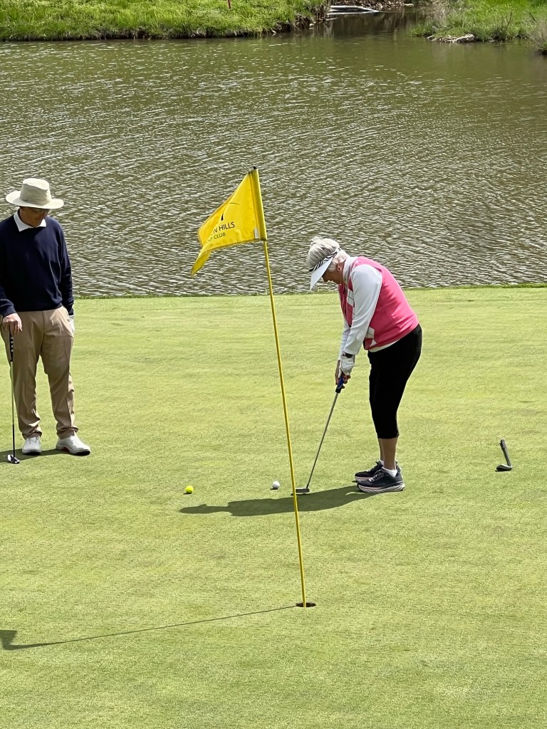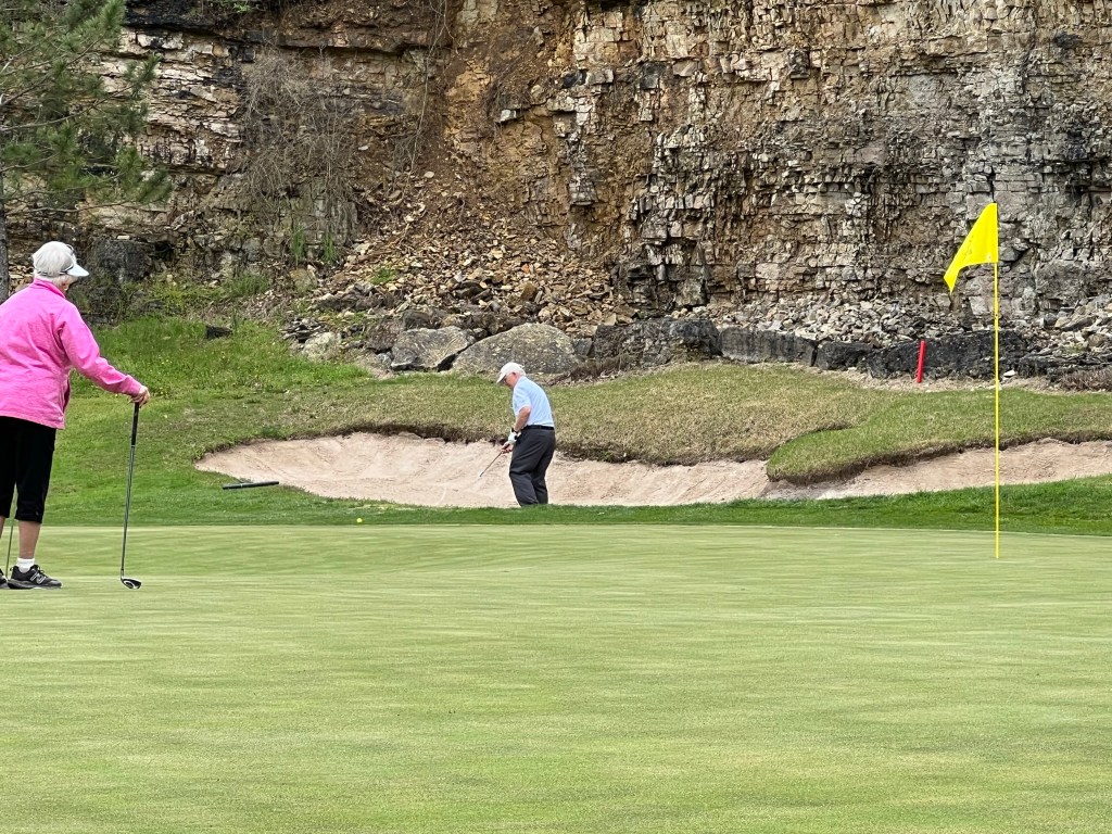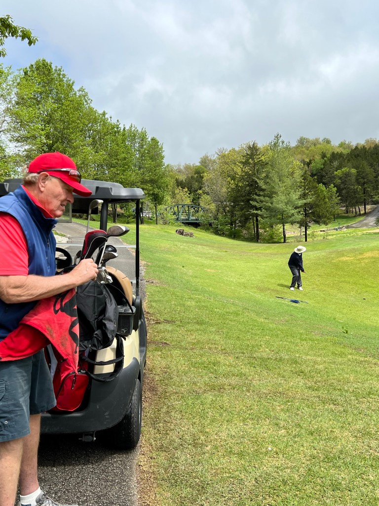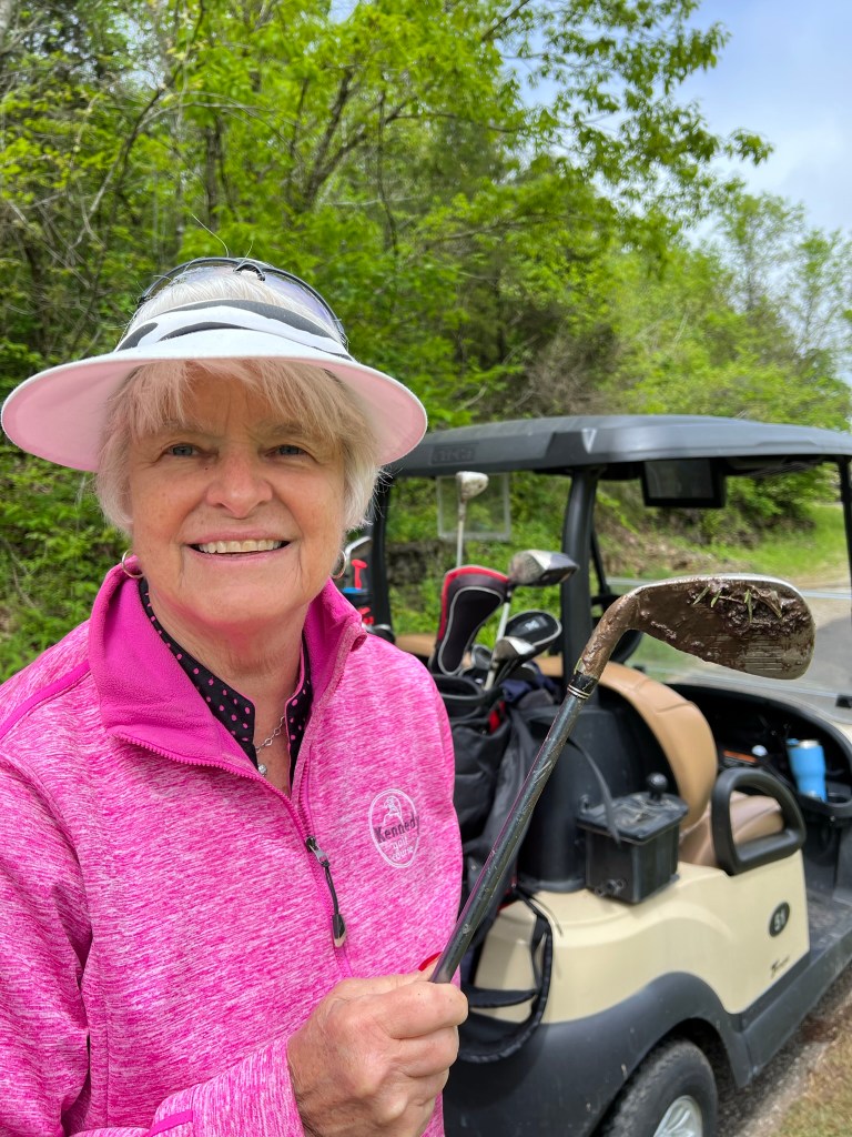 The second golf outing was played on Thursday at Ledgestone Country Club at StoneBridge Village. After several days of rain, the course was extremely soggy! Again, golf carts were restricted to the cart path. It’s a wonder they let anybody on to play. Joyce’s shoes were soaked before she finished the first hole. The determined golfers played on, and by the end of their round, the sun broke through the clouds to provide a beautiful finish on the 18th hole.