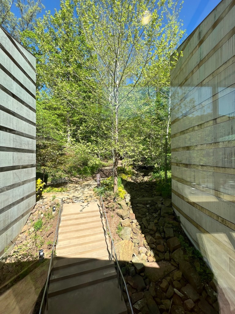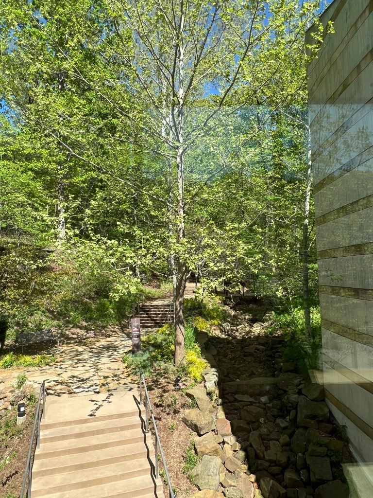 Once settled in our hotel in Springdale, AR, we went to the Crystal Bridges Museum of American Art in nearby Bentonville, AR. The museum, containing a world class collection of American art, is located on 120 acres of Ozark forest with 5 miles of trails, each offering different plant life, terrain and ecosystems.